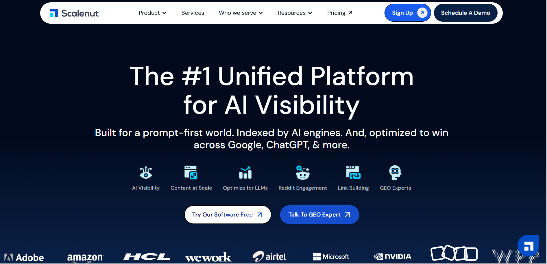 Scalenut is built for AEO (Answer Engine Optimization) as much as it is for SEO. It guides you from research to publish with query-shaped titles, key highlight sections, NLP coverage, schema/meta hygiene, internal link architecture, and proof prompts. However, that's not all; it also tracks how you appear across AI engines and Reddit, allowing you to iterate on signals, not guesses.