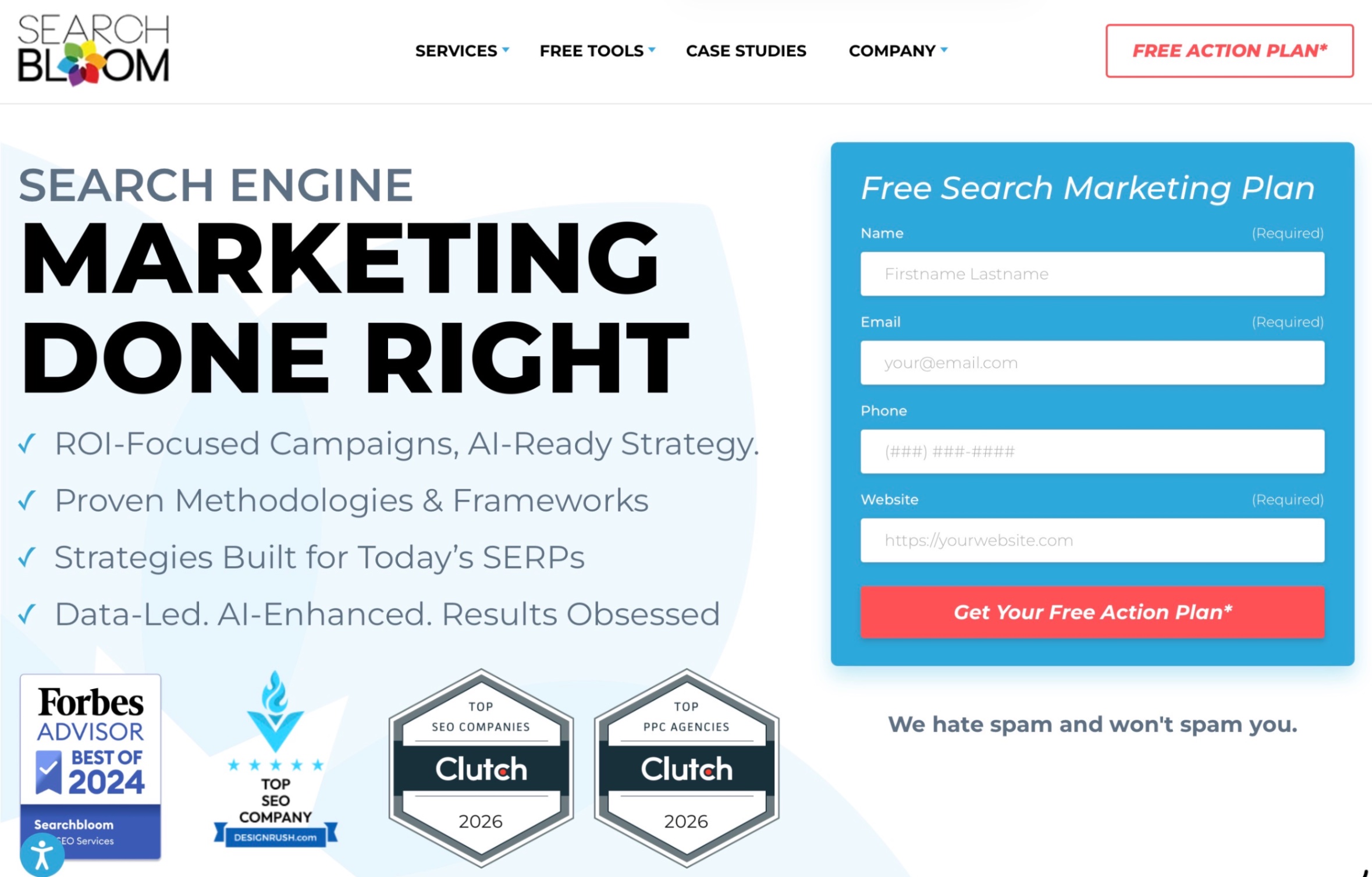 Searchbloom is a performance-focused search marketing agency known for SEO, PPC, and conversion optimization. It is a strong option for small businesses that want serious SEO execution, and it also shows growing alignment with AI search through its content and strategy around LLM and answer engine visibility.